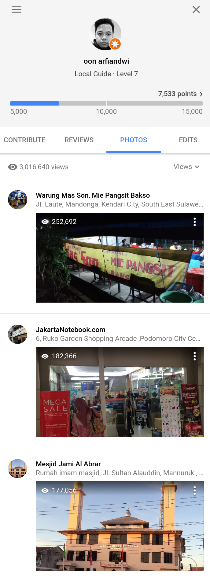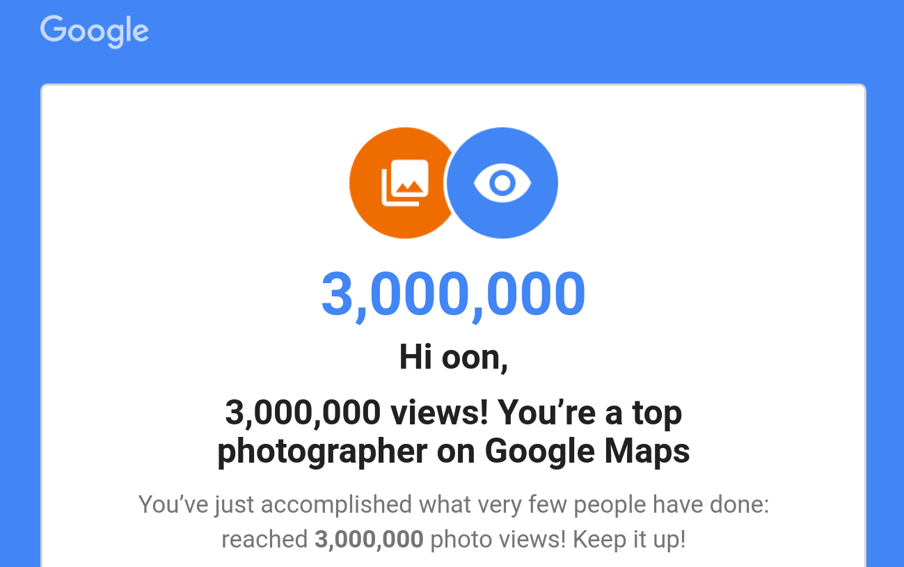 Until I got that email from Google Maps, I have submitted 324 photos to Google Maps, from a total of 2,833 contributions, level 7 on program Google Local Guides.